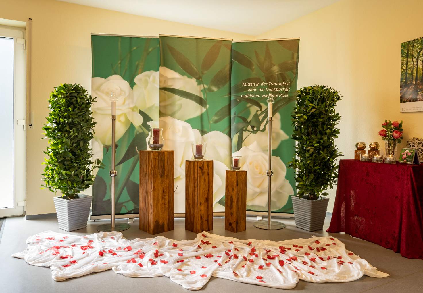 Hinzu kommen die Gestaltung von Traueranzeigen und Trauerdruck, die Organisation der Bestattungsfeier, inklusive Musik und Dekoration sowie die Kommunikation mit Behörden, Versicherungen (z.B. Rentenkasse, u.s.w.), Kirchengemeinden, Floristen, Zeitungsverlag und der Gaststätte für die Kaffeetafel. Wir arbeiten mit den Friedhofsverwaltungen besonders eng zusammen, um für immer die passende Grabstätte möglich zu machen. Außerdem informieren wir Sie kostenlos und unverbindlich zu allen Fragen der Bestattungsvorsorge.